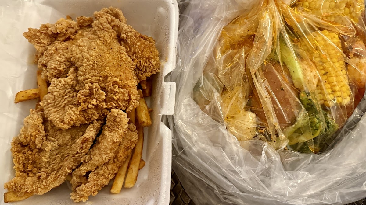 Juicy Seafood is all about fresh, customizable seafood boils-served steaming hot in signature sauces that balance spice, tang, and depth. Among the must-try items, the Cajun Crawfish Boil stands out, bursting with smoky heat and served with corn, potatoes, and sausage for a hearty Southern feast. The Garlic Butter Snow Crab Legs are another star, dripping in rich, savory flavor that clings perfectly to each tender bite of crab. For those seeking something crispy, the Fried Catfish Basket delivers golden perfection, paired with seasoned fries and a tangy house-made dipping sauce.